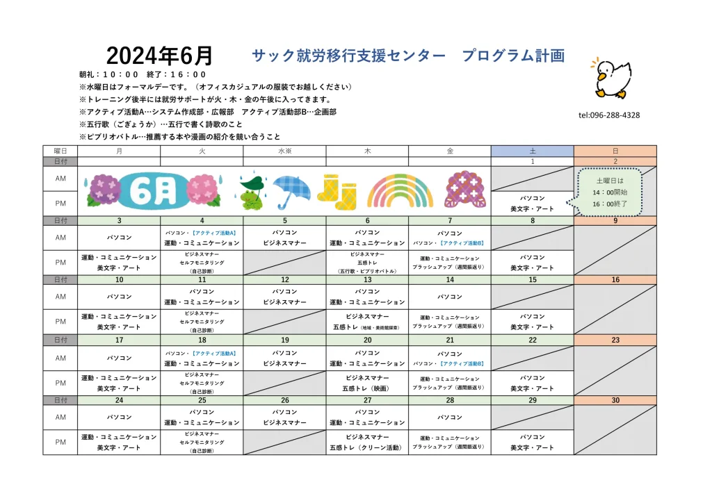 サックの6月の月間予定表をお知らせします📣