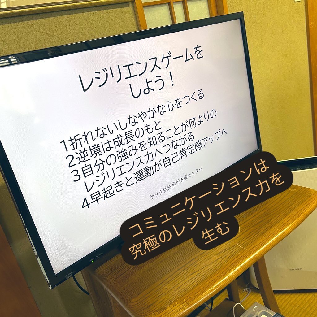 レジリエンストレーニングとは、困難(苦手な事)に遭遇したとき、以下に上げられるような思考転換により、ポジティブに困難を乗り切れるようにするためのものです。サックではこのトレーニングを通して、利用者様が就労に前向きに取組み、長期の勤務が可能となる事を目指しています。