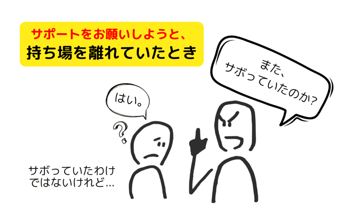 サボるという言葉の意味がわからず、質問されている内容も理解ができずにいたRさんは、サポートをお願いしようと持ち場を離れていたことを言えずに「はい」と答えてしまいました。