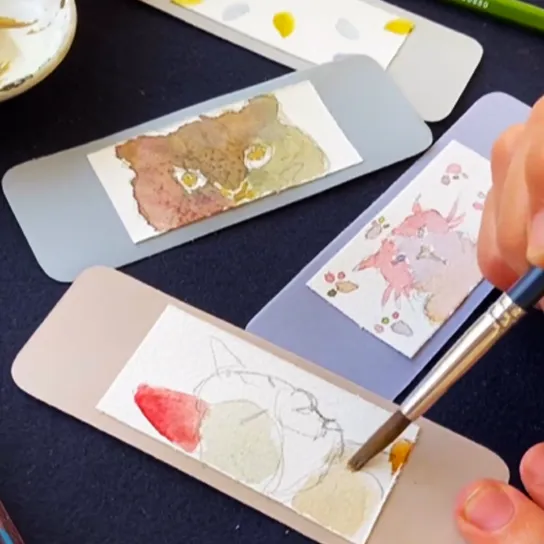 自由に栞に表現しました。あたたかみのある色彩がとっても素敵ですね🐈