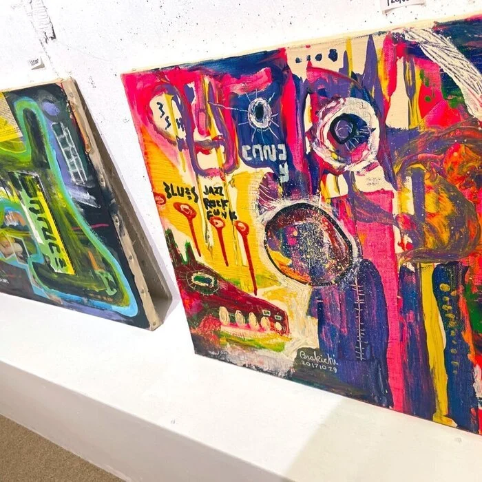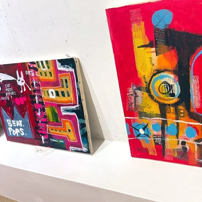 コラージュを取り入れたカラフルで斬新な作品がとても素敵でした。