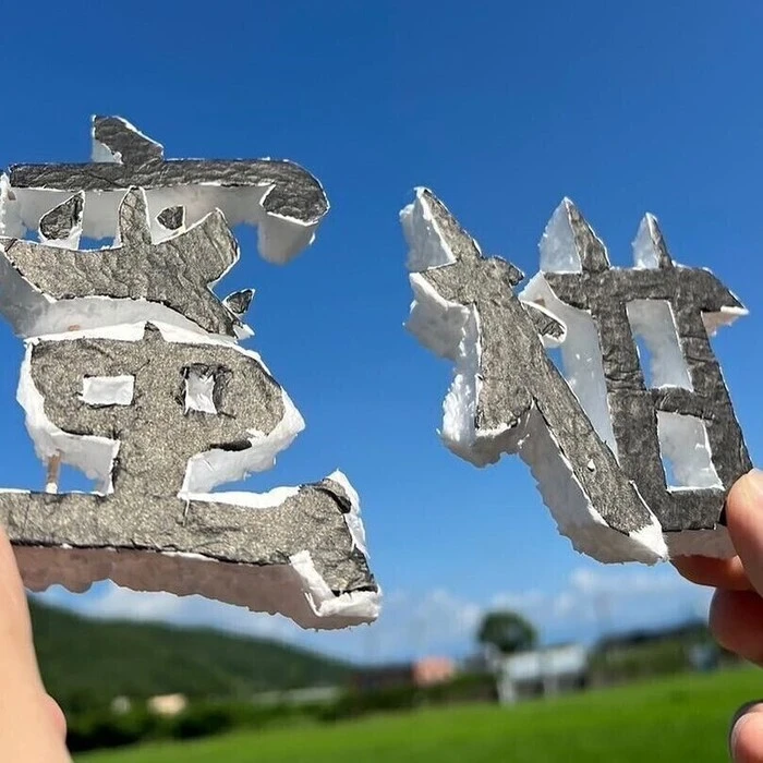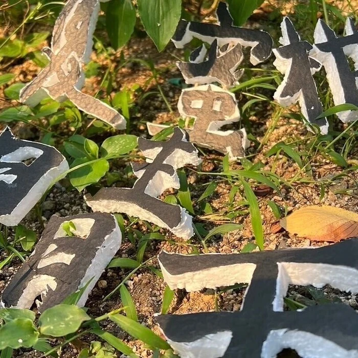 Sさんが「蜜柑」の文字を発泡スチロールで作られたので