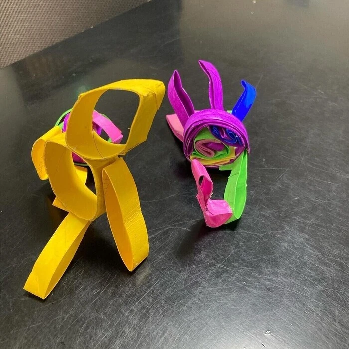 一般参加者の皆さんとともにトイレットペーパーの芯を使って