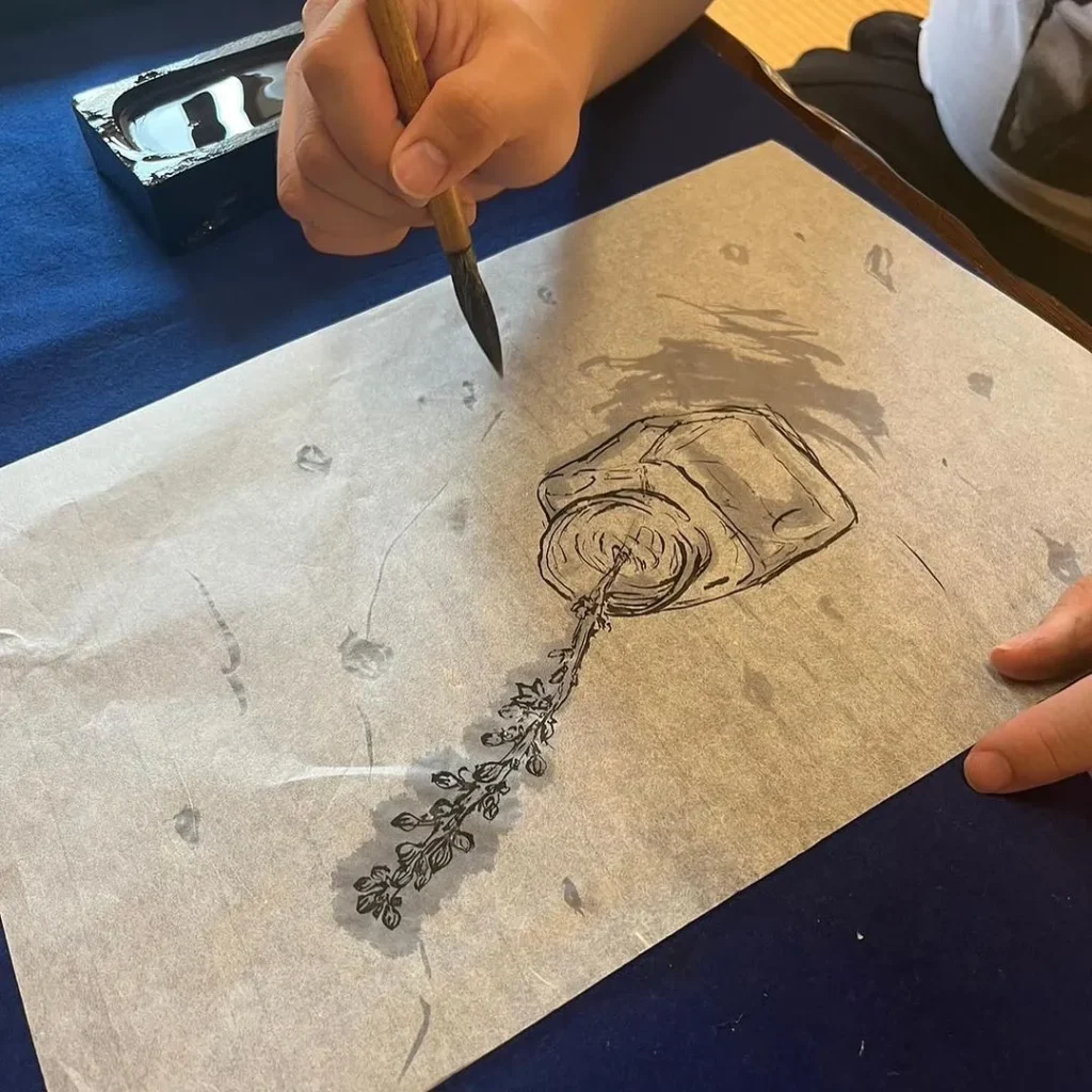 筆に水を含ませて”匂い”や”空間”、”色味”を表現されました!