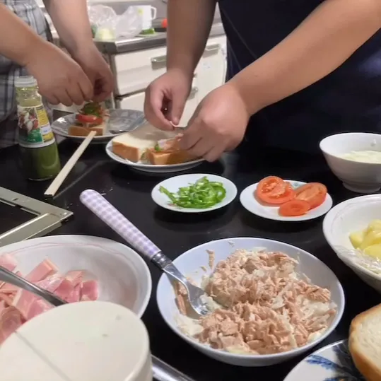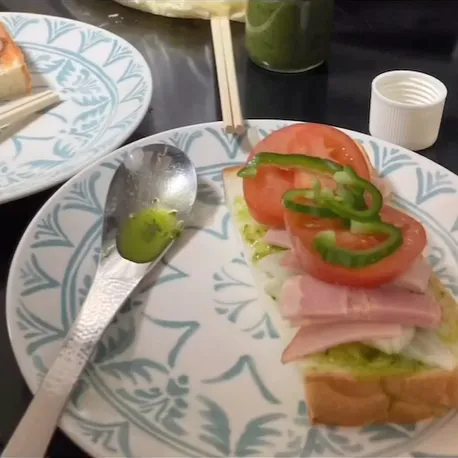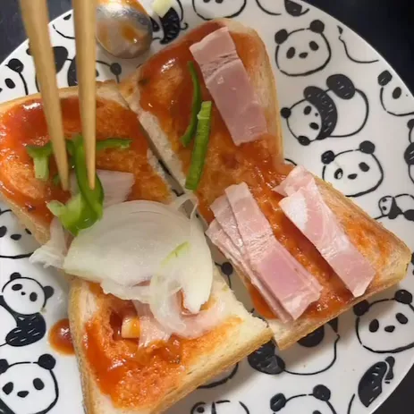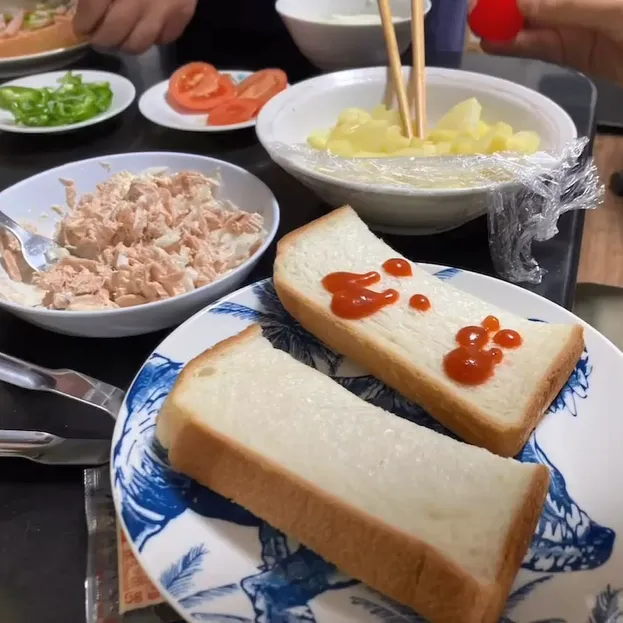 食パンを半分に切って、玉ねぎやツナ、ナス