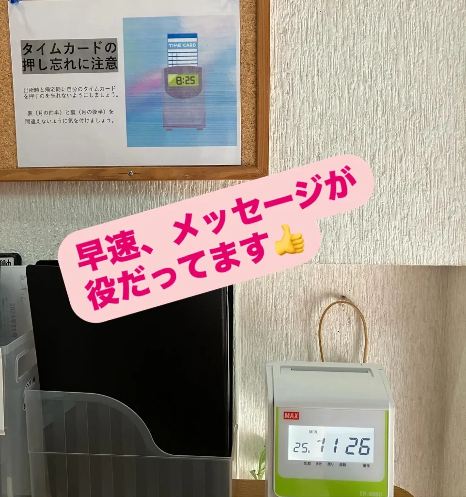 大きなタイムカードのイラストが、とても目を引きますね😊