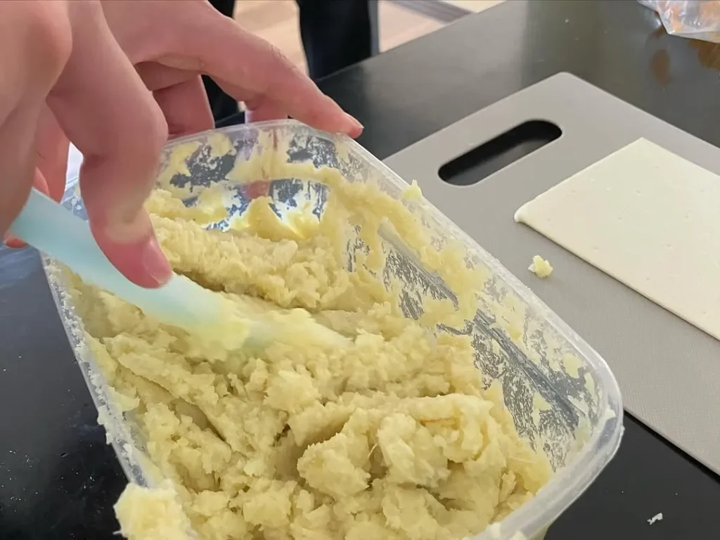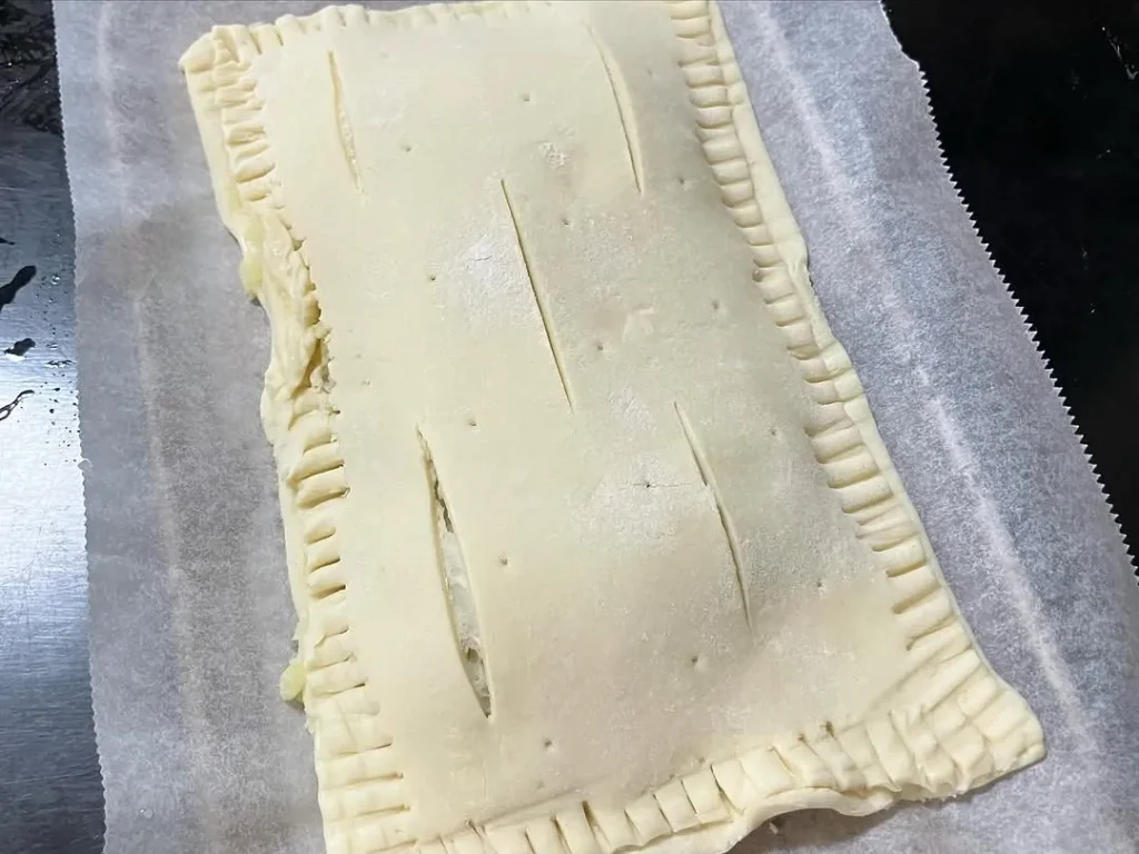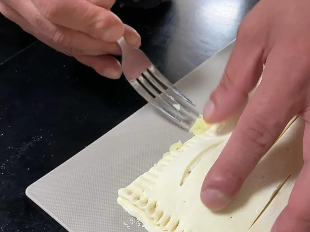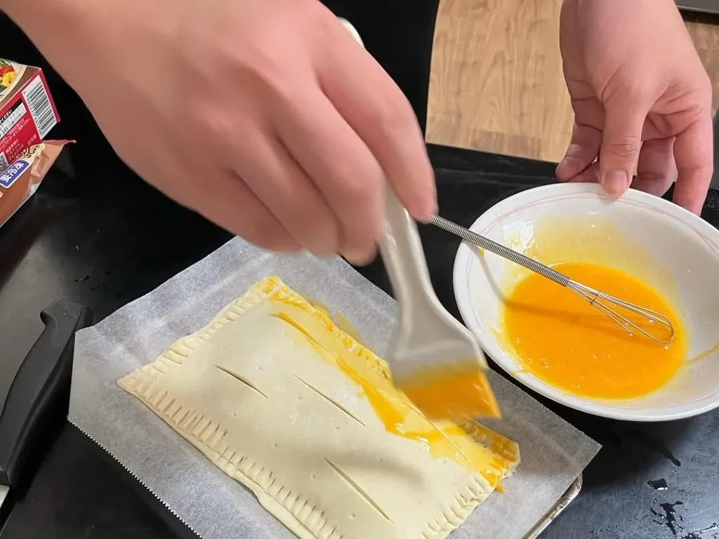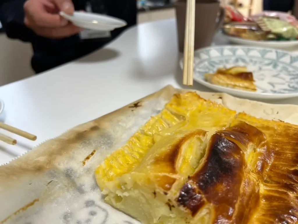 サツマイモ、パイ生地、砂糖少々、牛乳、マーガリン、卵の黄身でした。