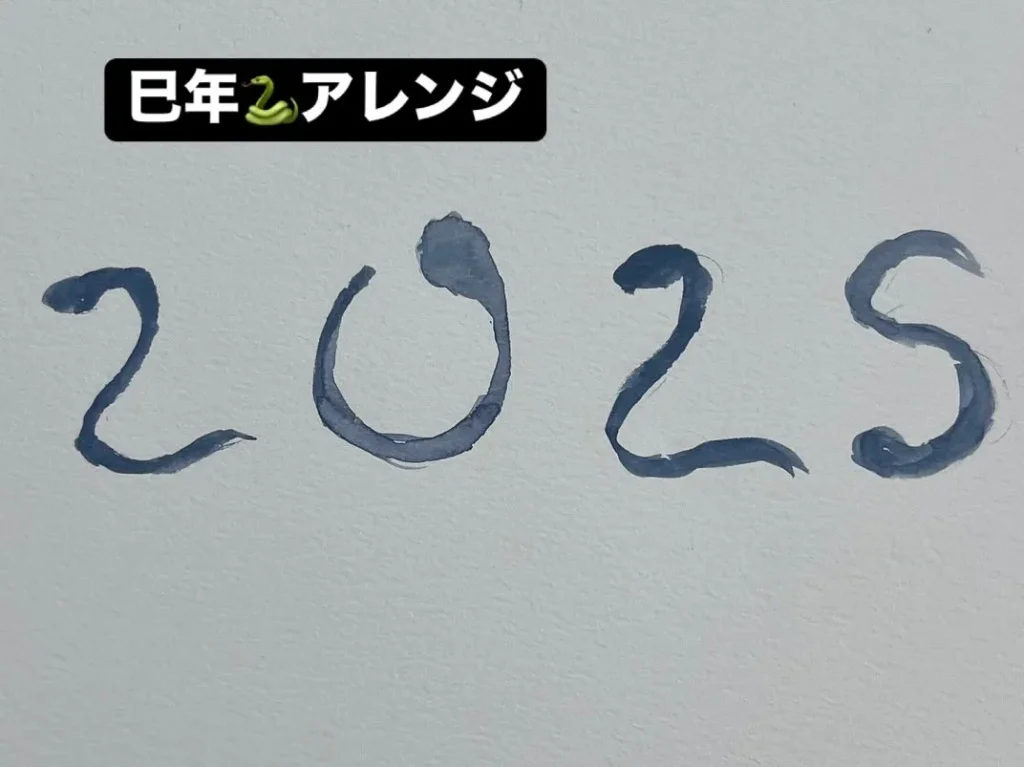 顔彩を使い巳年🐍にちなんで絵を描きました。
