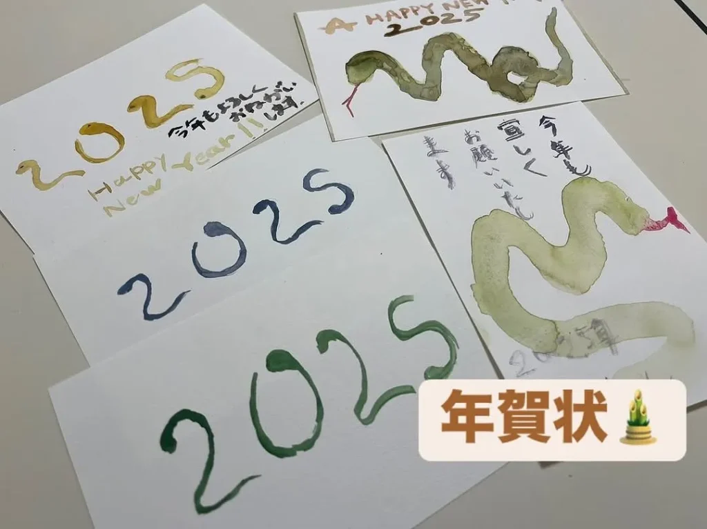 感じる作品もできあがり、どれも愛おしい🥰賀状になりました!