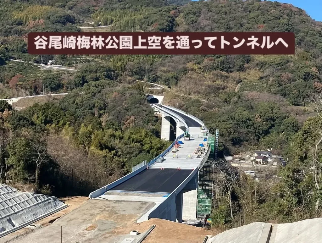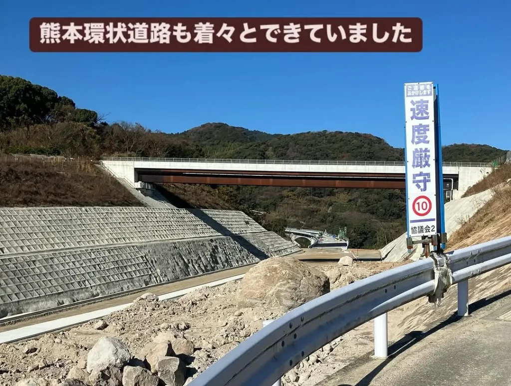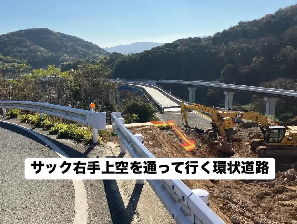 アンバーテラス左手上空を通って行く熊本環状道路の工事もさらに進み