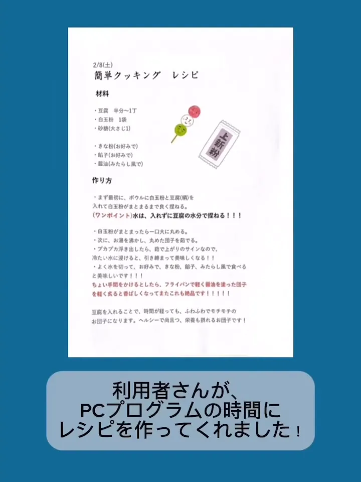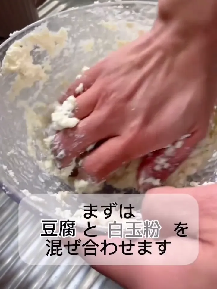 豆腐を白玉粉に混ぜて作ると柔らかくてヘルシーですよ!と