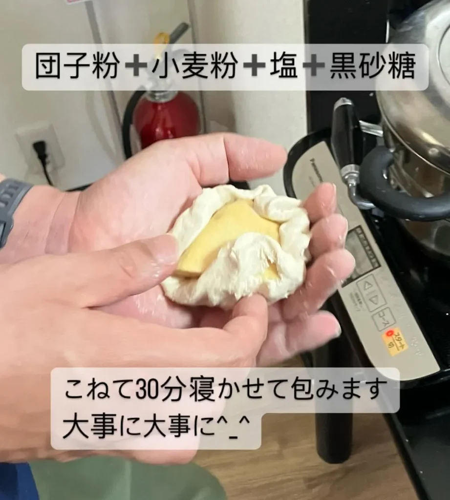 ⚪︎団子粉と小麦粉の皮でツヤ感あり、