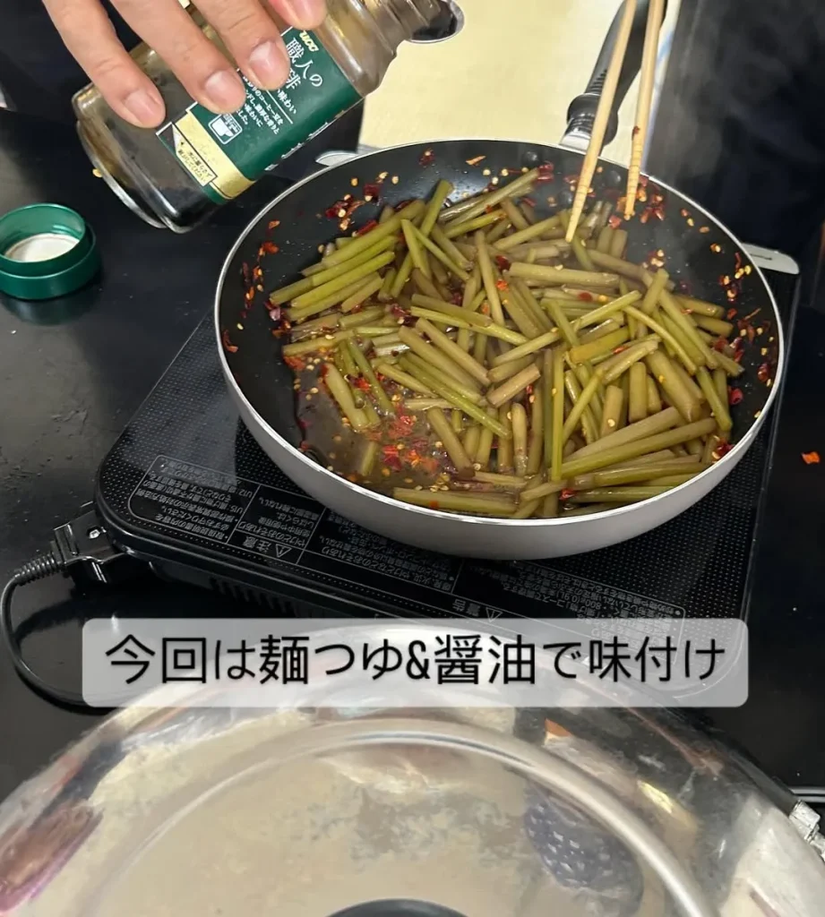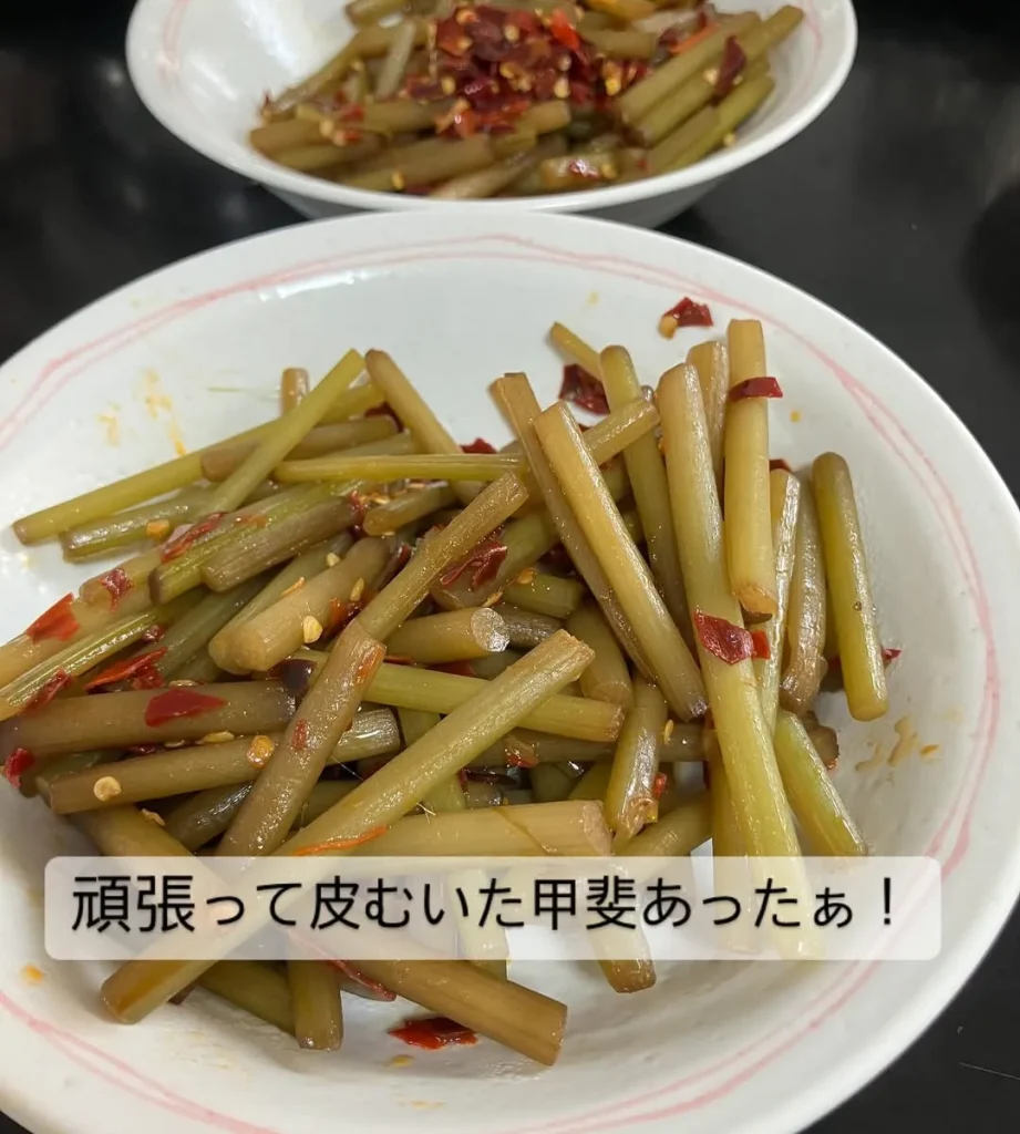 ピリ辛!昨日の皮むきとアク抜きが功を奏した!