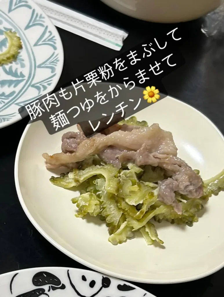 ⚪︎ゴーヤと豚肉で箸が🥢すすんだ。