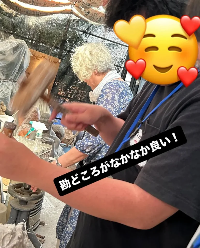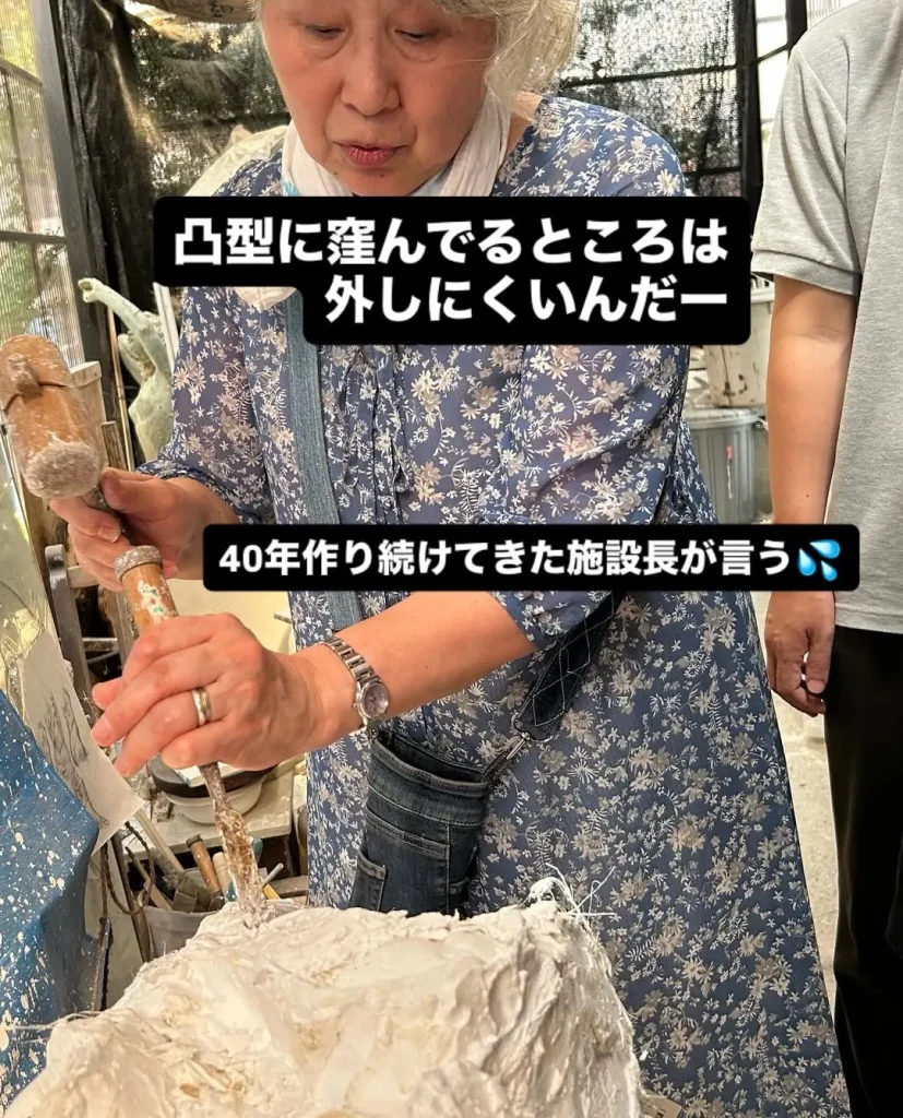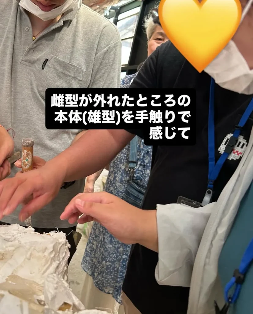 偶然にも、施設長が作品の型枠を外す作業に取りかかる時、
