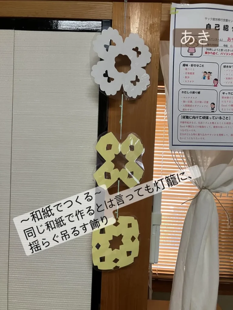 💠和紙を折り畳み鋏✂️を入れ広げて花模様
