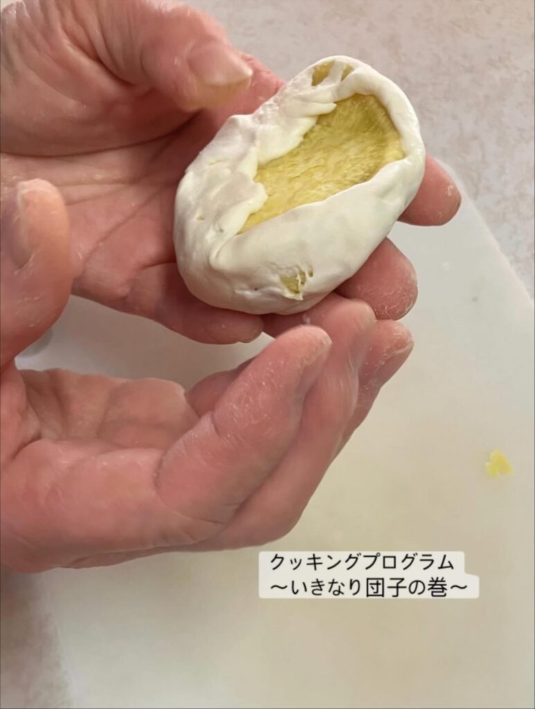 ⚪︎生地を薄く伸ばして、餡をのせて芋をのせる