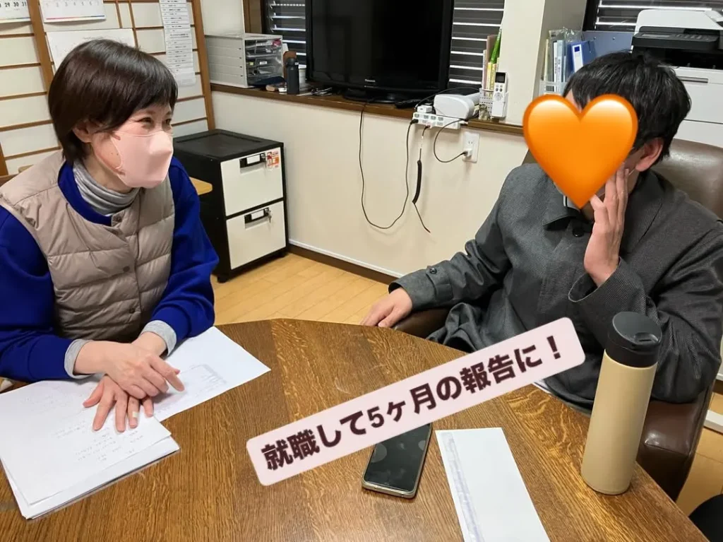 就職して満5ヶ月になるサックの卒業生が面談に来られました。