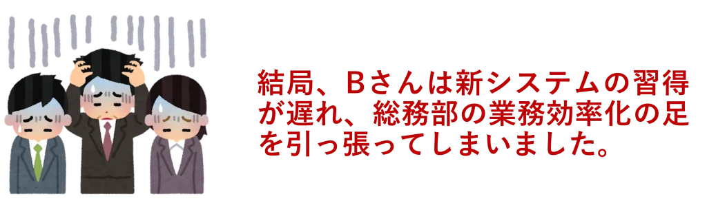 Bさんは、会社が新しいシステムを導入することになった際、強い抵抗を示しました。「今までのやり方で十分なのに」と愚痴をこぼし、変化を受け入れようとしません。